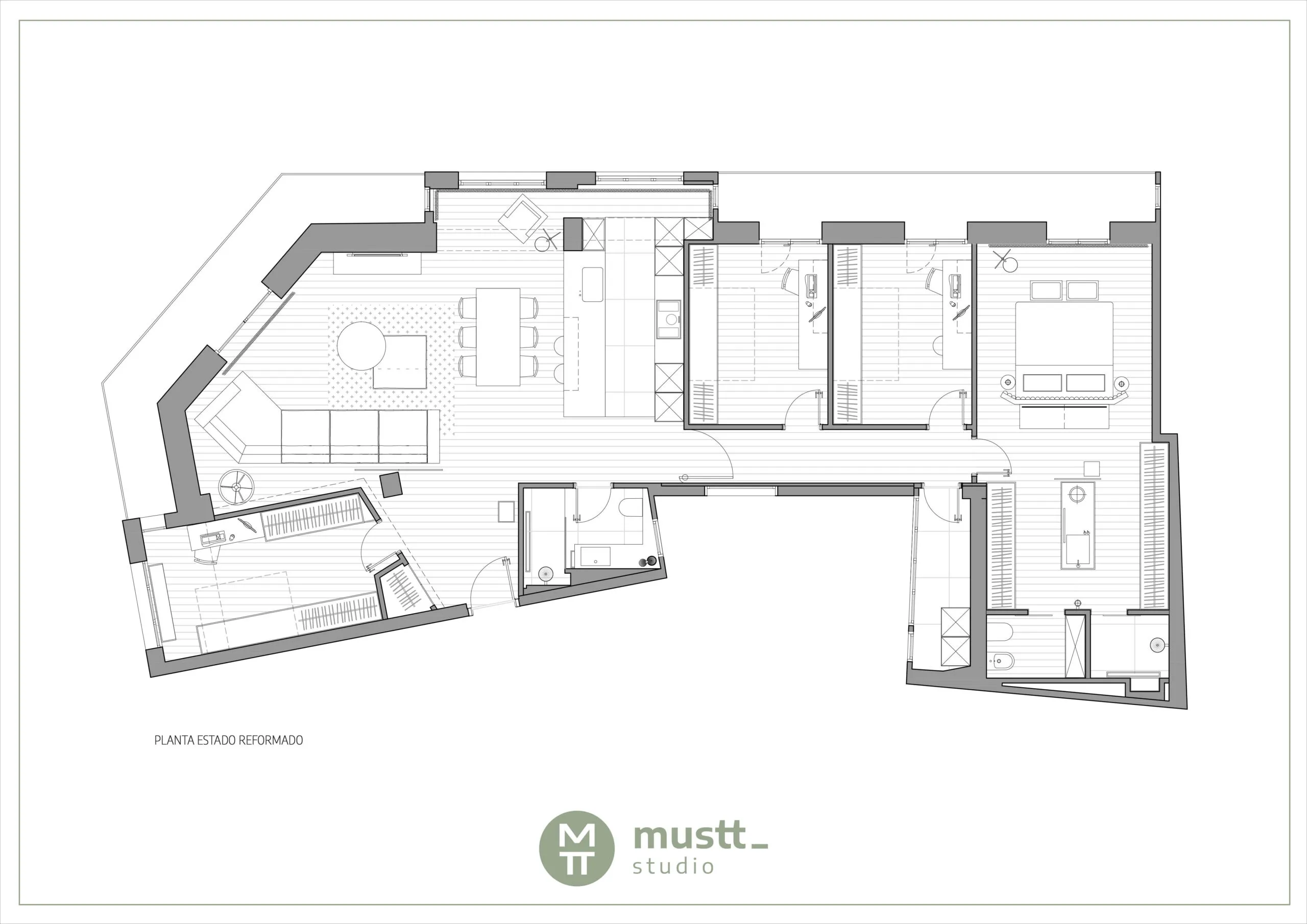 Vivienda en Coso es un proyecto residencial realizado en Zaragoza. Con una superficie de 150 m², el estudio desarrolló el diseño arquitectónico, ejecutó la obra y dirigió todo el proceso. El trabajo incluyó la planificación del espacio y la coordinación de los distintos equipos implicados, asegurando una gestión eficaz. Este proyecto refleja la experiencia de Mustt Studio en el desarrollo integral de viviendas, combinando funcionalidad y adaptación al entorno urbano. La intervención forma parte del enfoque del estudio en arquitectura residencial con servicios completos y personalizados.